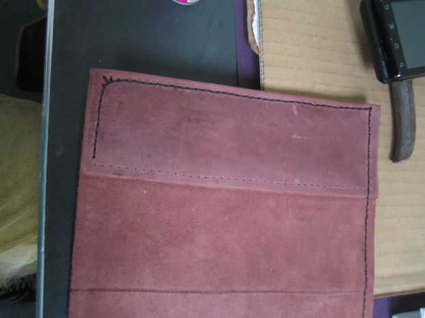 Usé una lezna de coser para hacer la costura. Si nunca has usado un cheque estevideo. Realmente fue muy valiosa. El cambio de uno que haría las instrucciones en el video es que calculo unos 16-18 pulgadas de hilo para cada 12 pulgadas coser. Tal vez no soy bueno en la medición, pero funcionó hacia fuera la mitad. No tienes que utilizar una lezna de coser bien. Puede utilizar un hilo y aguja estándar pero usted probablemente querrá pre-perforar los agujeros con una perforadora punzón o costura.