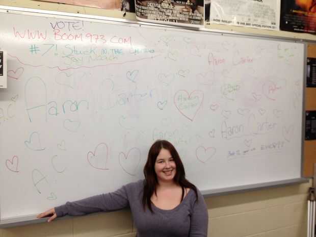 Escuchando mala música en voz alta es una buena manera de molestar a nadie. Me parece que Aaron Carter, Nickelback, Backstreet Boys, NSYNC y Aqua funcionan excepcionalmente bien para molestar a mi maestro. Sugiero escuchar la misma canción varias veces por lo que es lo que más molesta. Hacer un santuario a la artista realmente colmo. Decidí hacer un santuario a bordo de mi maestro a Aaron Carter.