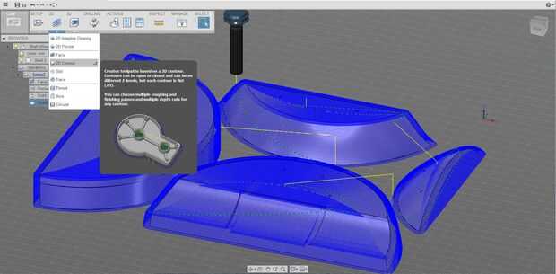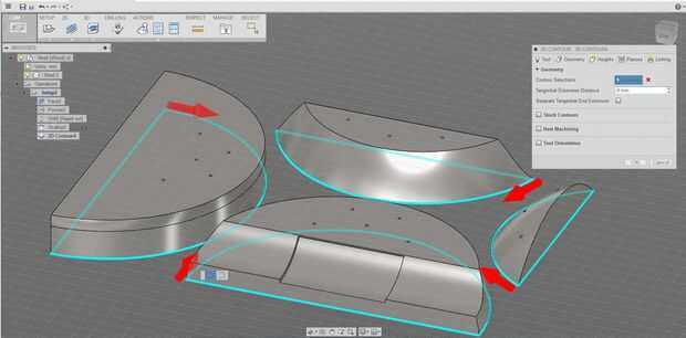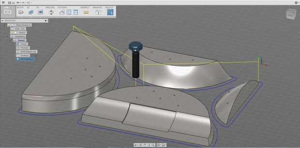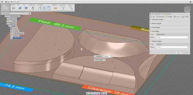 Sólo izquierda de lo que fue una pasada final con el bit de desbaste para liberar las piezas de la parte inferior del bloque. Esto último, como un camino por separado, así que podría hacer que las piezas estuve cortando hacia fuera fueron todavía pegados a la mesa con la cinta de doble cara después de todo los otros pasos. Este fue un camino fácil. Todo lo que tenía que hacer era seleccionar las caras de cuatro del fondo y asegúrese de que solamente pasar una vez, con una altura inicial de 2mm por encima inferior plano del modelo y una altura acaba un par de mm por debajo del plano inferior.