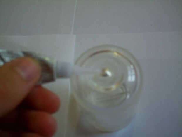 Coloque el vibrador en su lado para dejar que el pegamento seco de lo contrario sería probablemente por goteo.