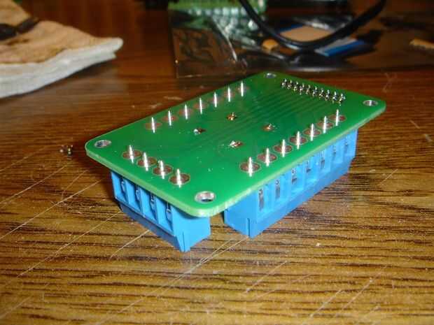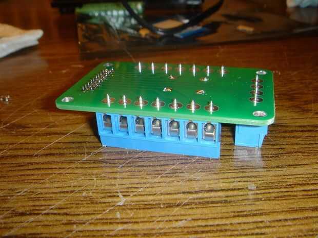 Cada borne de tornillo tiene un lado expuesto en que los cables se insertan. Coloque todos los terminales de tornillo en la Junta asegurándose de que la entrada de cable puntos cara fuera de la Junta. Voltea el tablero para que la Junta se basa en los terminales de tornillo, doble comprobación de que están todas orientadas correctamente. Una pierna de cada terminal a la Junta para mantener el resto en lugar de la soldadura, luego continuar soldando las patas restantes hasta que termine.