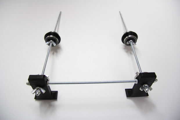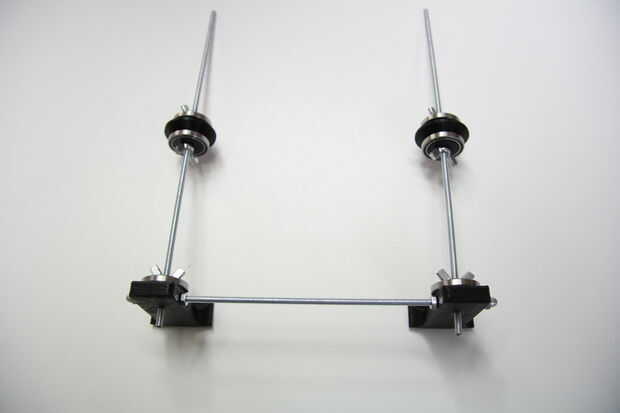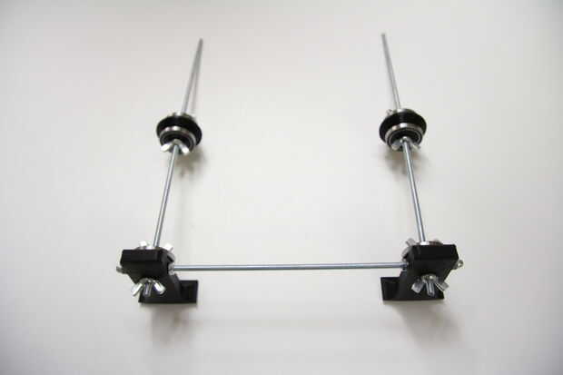 -Deslice que lado de cada varilla en las ranuras frontales de cada pieza de soporte de impresión conectado a uno de los ensamblajes de la barra más cortos