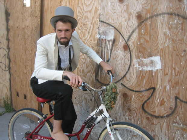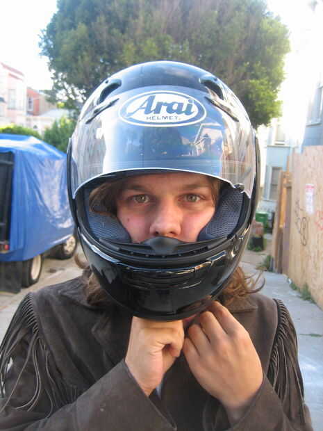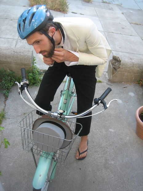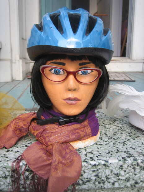 1. usar el casco para el paseo al esconder el sombrero en su cesta de la bici.