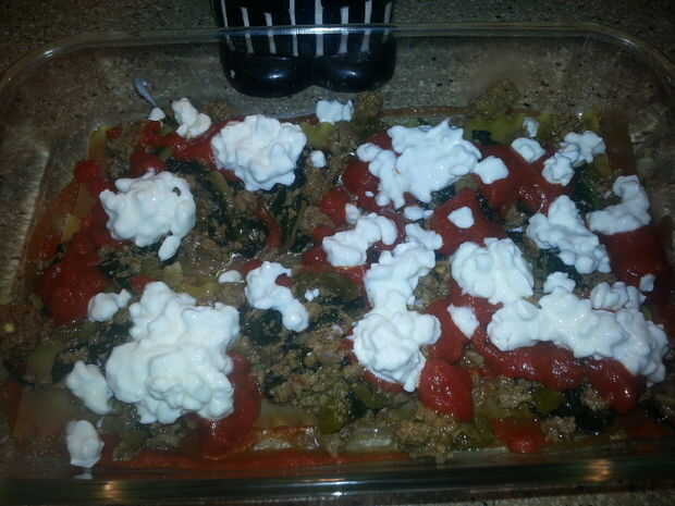 MMMM... Lasaña.  ¿Qué es no para amar acerca de él?  Tal vez la gran cantidad de grasa y las calorías que vienen con él.  Creo que puedo han resuelto ese problema con esta lasaña de espinacas de Turquía.  Es posiblemente la lasaña más sabrosa que he