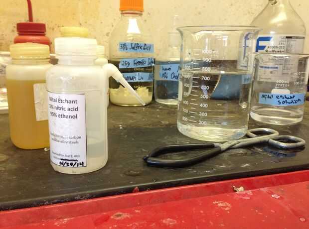 Si al microscopio la muestra parece ser demasiado grabada o grabada bajo, simplemente volver a pulir la muestra usando la rueda de pulido y otra vez.