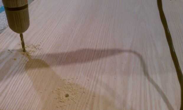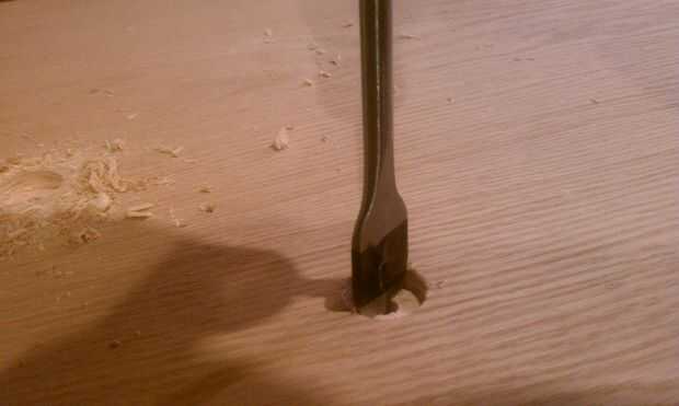 Perforaciones. Taladre los orificios de 1/4" y luego vuelta la Junta a la parte inferior de la base para perforar los agujeros de 1" a la profundidad que marcaste en la broca.