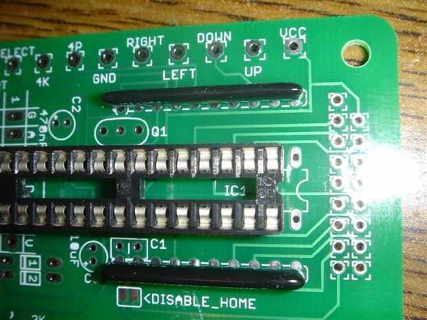 El zócalo del IC, la viruta del IC y la imagen de la IC impreso sobre la placa misma todos tienen una muesca en un extremo. Esta identificación permite saber que forma el chip y el zócalo deben ir en la placa. Localice la muesca en el zócalo del IC y la placa de circuito impreso. Enchufe el conector por lo que las muescas en el extremo mismo. Voltee la placa y las piernas diferentes 28 de la toma de corriente de soldadura.