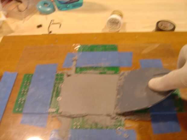 Cuadro 4. Difundir la soldadura pasado liberalmente en su plantilla de acrílico. Asegúrese de cubrir todos los agujeros!