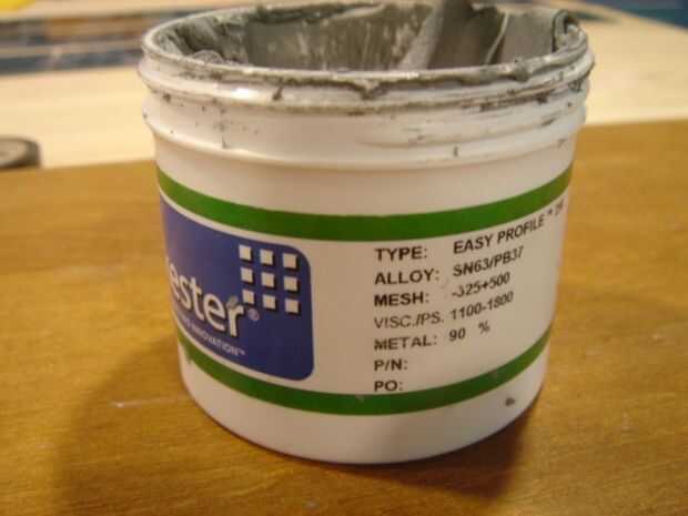 Cuadro 3. Usando su pasta de soldadura recomendado: Aplique un pegote de buen tamaño en un esparcidor de pintura plástica simple
