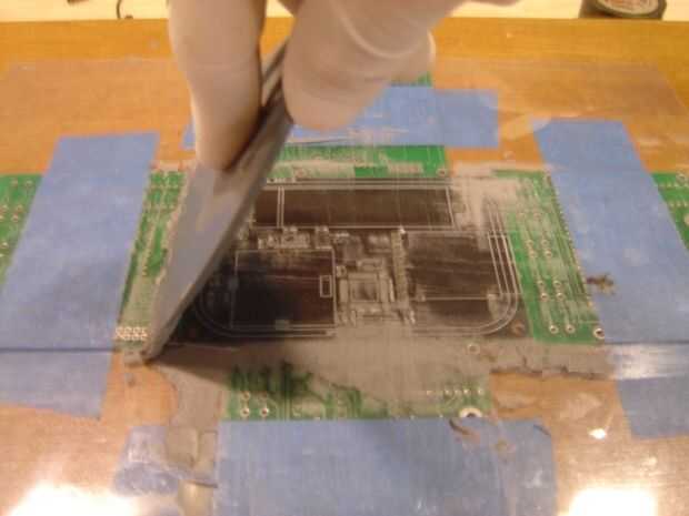 Cuadro 6. Debe tener casi la misma cantidad de pasta de soldadura su "espátula" que comenzó con excepción de los orificios de la plantilla.