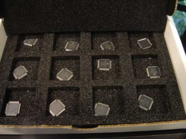 Cuadro 1. Estamos montando 15 tableros hoy. Aquí te cansee 12 de la uProcessors de 18LF4620 de Pic que se utilizan.