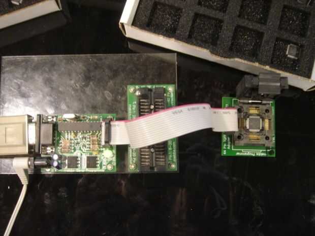 Foto 2 y 3. Colocamos cada parte en un adaptador especial que está ligado a un programador serial www.melabs.com.