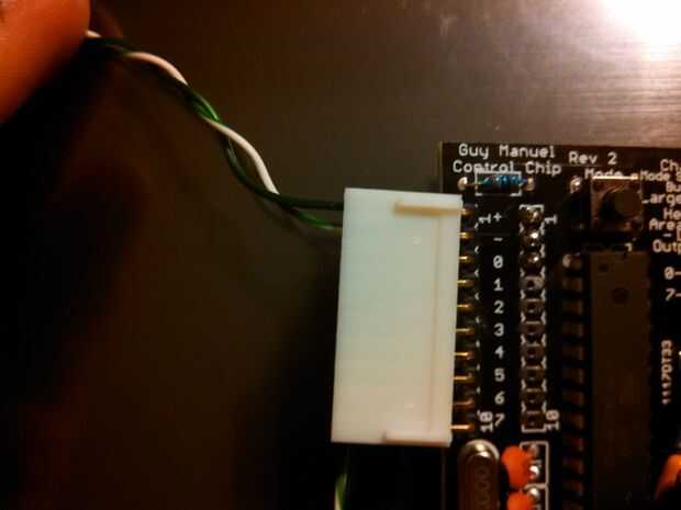 Tome el cable positivo (verde en mi caso) y enchufe en la parte inferior de un conector de 3 pines DuPont.