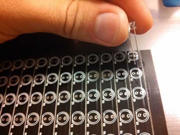 La primera cosa que quieres hacer es colocar todos los LEDs en PCB, no romper las tablas, hará más difícil montaje. (Fotos segunda y terceros)