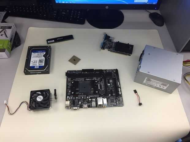 Se reúnen todos los componentes de la computadora que vas a construir y los establecidos. Asegúrese de que nada está visiblemente dañado y tienes todo que lo necesario.