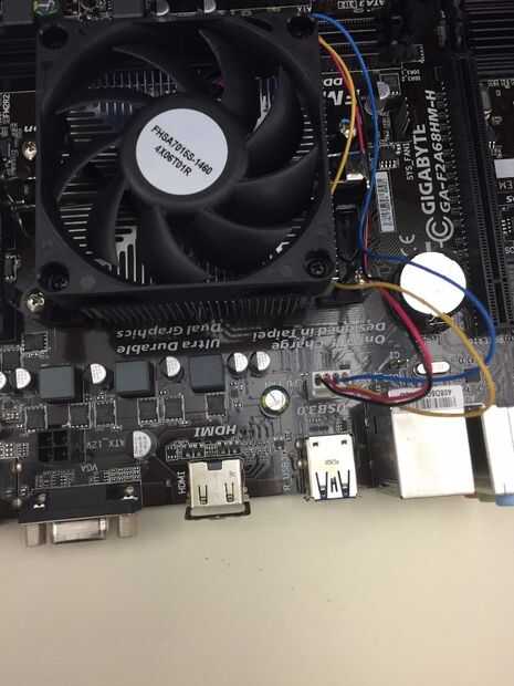 Enchufe en el disipador de calor a los pines que están etiquetados CPU_FAN. Si no es enchufar no lo fuerce, no se puede posicionar bien. Si se coloca justo debe insertar sin necesidad de mucha fuerza.