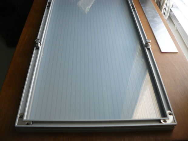 3. Tire el canal superior del panel. Uno de ellos fue calafateado en bastante apretada, así que usted puede tener que usar un poco de fuerza. Los otros dos llegaron justo al lado.