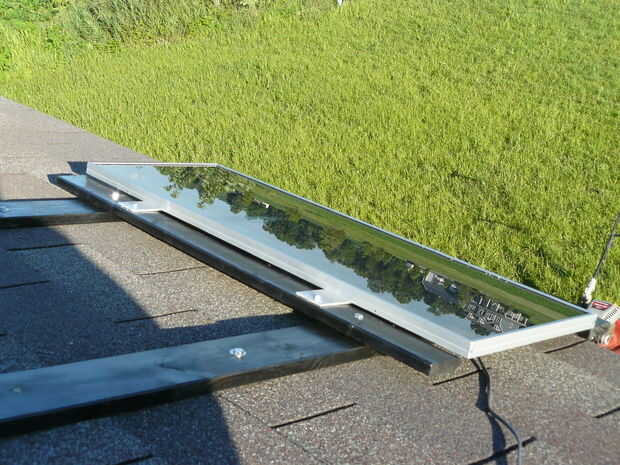 El panel ahora está montado en el techo. Mientras estás allí, se reúnen los tres cables en un solo paquete de alimentación y cinta adhesiva.