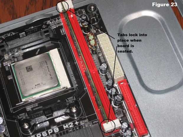 2. Presione firmemente en ambos extremos de la Junta para establecer en el zócalo. Asegúrese de que la cerradura de fichas en su lugar como se muestra en la Figura 23.