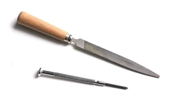 Necesita estas dos herramientas, un pequeño destornillador y un archivo pequeño:
