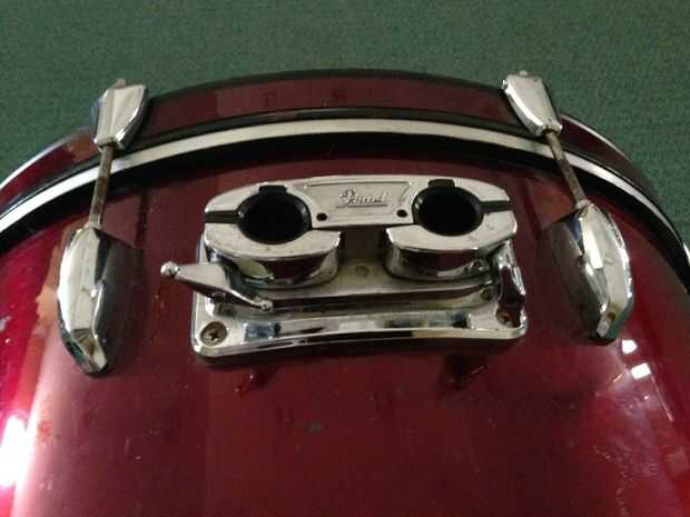 El primer paso es colocar los brazos a los tambores del tom (cuadro 1). Inserte el extremo corto del brazo en el tom, deslizar en y apriete el tornillo (Foto 2). Hacer esto para ambos de lo toms.