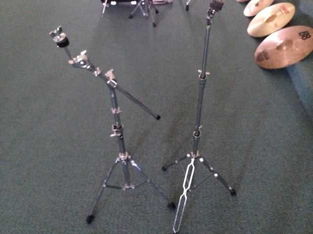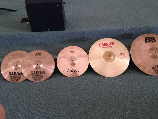 Dispersar los platillos en su conjunto según su preferencia.  Mina organizada (de izquierda a derecha) como hi-hats, crash, ride crash y montar (cuadro 16).