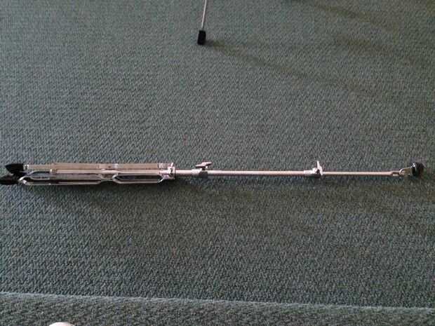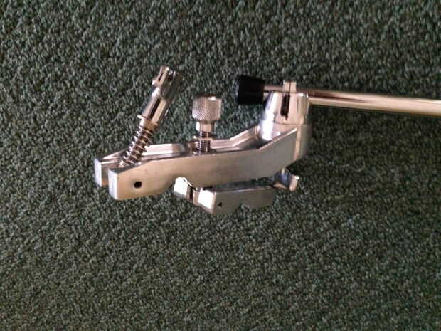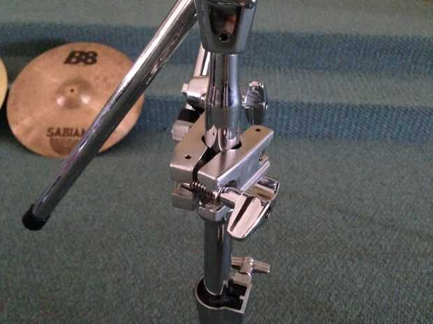 Para establecer la base de todo, simplemente encontrar el tornillo inferior en el fulcro de las piernas, aflojarlo, extender las piernas a un ancho robusto y vuelva a apretar el tornillo (cuadros 2, 3 y 4). Lo ancho la base tendrá que ser será determinado por el tamaño y la ubicación de ese platillo, el ángulo de la parte superior del brazo del soporte, y si no que agregando una extensión de brazo adicional (cuadro 5).