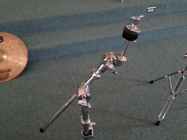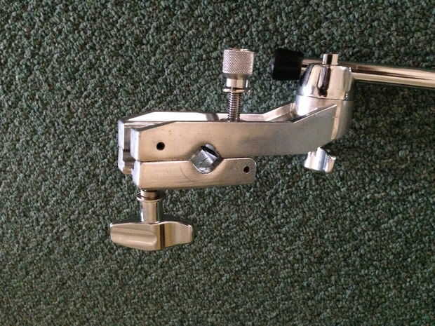 Un montón de kits de tambor aprovechar extensiones de brazo de platillos (cuadro 9). Esto eliminan la necesidad de un soporte extra todo, y también conserva espacio. La exacta construcción del clip de la extensión del brazo varía, pero sólo explicaré la que se muestra en las fotos. El clip tiene un abierto (foto 10) y posición de cerrado (cuadro 11). Abra el clip por aflojar el tornillo y girar la barra de metal que cuelga flácido. Elegir un soporte de platillo fuerte, poner el clip de la extensión alrededor del poste, giro el brazo metálico a la posición de cerrado y apriete el tornillo a colocar (cuadros 12 y 13). Extender o rotar el brazo según donde desee el platillo adicional que se encuentra alrededor del perímetro de su batería. Añadir el platillo a la punta de la extensión del brazo como se indicó anteriormente para completar este paso (cuadro 14 y 15).