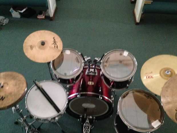 Con el bajo, toms, redoblante, hi-hat y set de platillos (cuadro 17), estás muy cerca de agarrar sus palillos del tambor y de!
