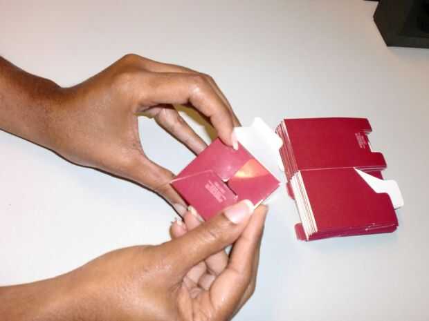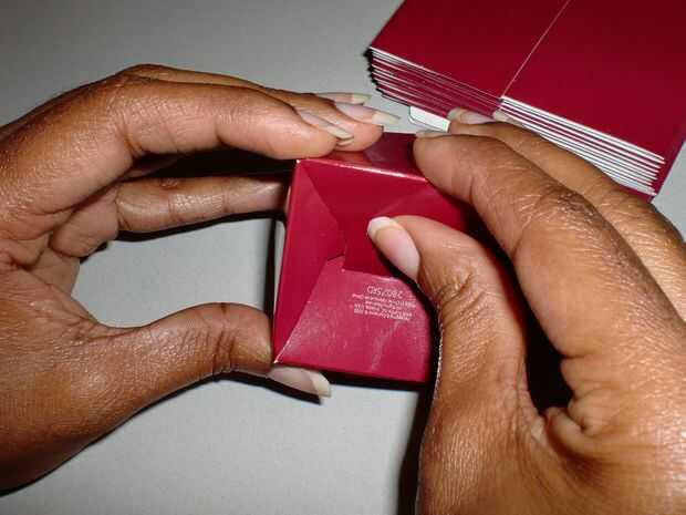 Ahora, mantener las pestañas en su lugar e inserte la ficha de lengua por debajo de la abertura y entre las pestañas laterales, que mantienen el fondo de la caja bien cerrado.