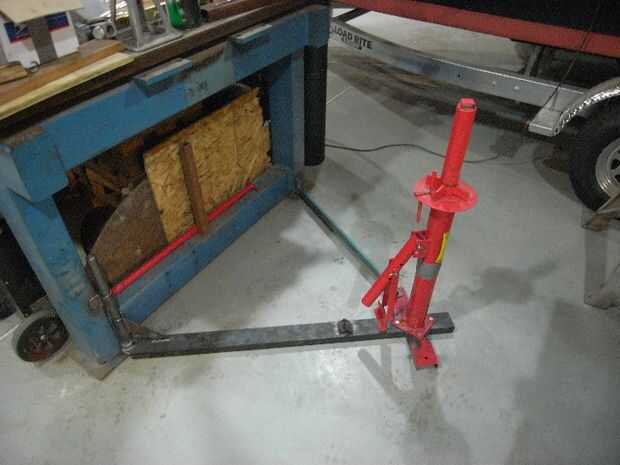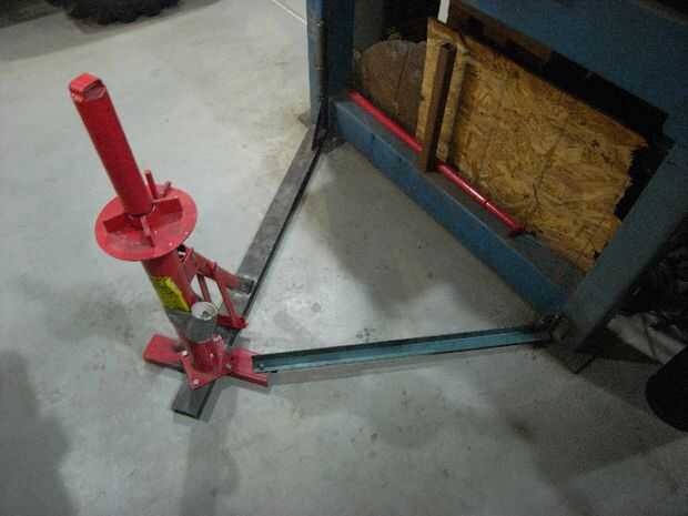 Entrar en mi solución. Se trata de montar la desmontadora a un canal de 3" de acero C y abisagrar para mi mesa de soldadura. En más de 3 toneladas, mi mesa de soldadura no se va a mover a cualquier lugar.