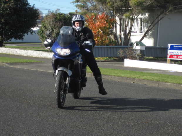 - La moto comienza a moverse adelante para caminar con él. Saber dónde está su estribera y tenga cuidado de no golpear con la pierna.