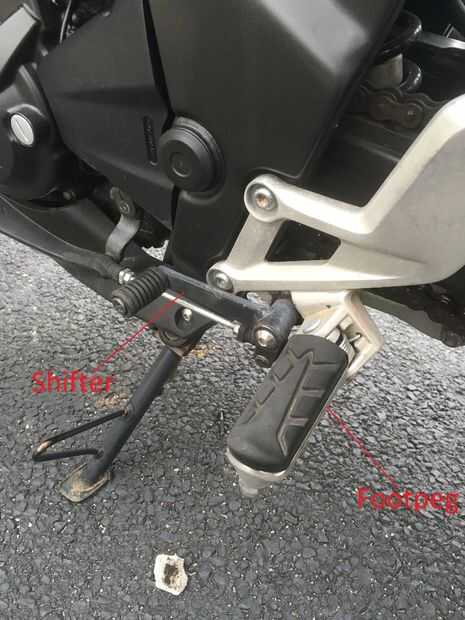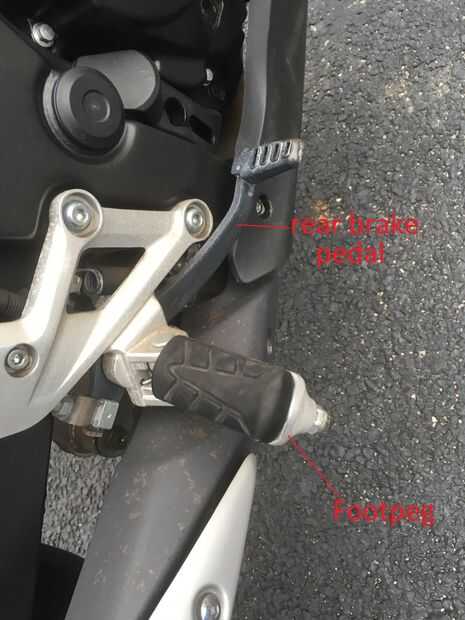 La palanca del freno trasero se usa para activar el freno trasero de la moto y se encuentra cerca de la posición del pie derecho delante de la estribera del lado derecho. Use su pie derecho para presionar la palanca para usar el freno trasero.