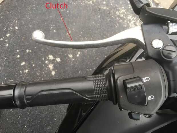 La palanca del embrague se utiliza para funcionar el embrague y es en el lado izquierdo del manillar. La palanca de embrague actúa como el pedal del embrague en un coche de transmisión manual como una conexión entre motor y rueda trasera. Apretar completamente la palanca del embrague para cortar energía a la rueda trasera. El embrague en motos es secuencial, lo que significa que no puede saltar los engranajes. El uso de la palanca del embrague es muy crítico para el control de la moto.