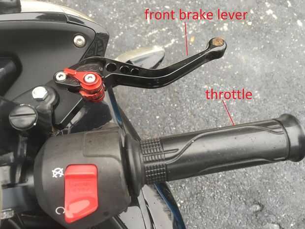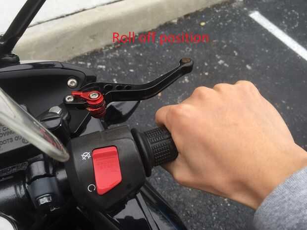 El acelerador se utiliza para controlar la velocidad del motor y se encuentra en el lado derecho del manillar. Es como el pedal de gas en un coche. En el acelerador, la velocidad del motor aumentará y aumentará la velocidad. Al desactivar el acelerador, la velocidad del motor caerá y ralentizará la moto. Puede consultar los cuadros en la parte superior la página para ver el rollo y rollo posición off.