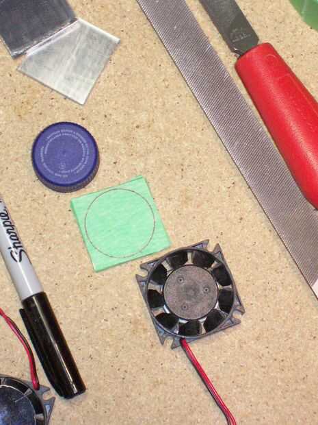 Material del espejo viene generalmente como una hoja por lo que debemos cortar cuadrados de dimensión adecuada, correspondiente al tamaño del ventilador.