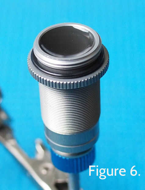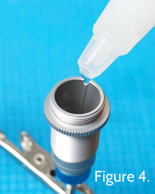 7. Asegúrese de que el choque es rematado y deslice el anillo superior sobre la parte roscada en la parte superior del cuerpo de choque. (Figura 6).