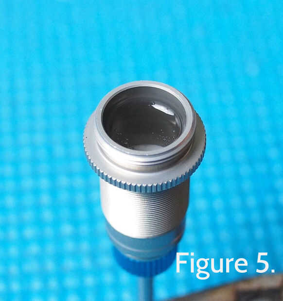 6. Deje que las burbujas alcanzar la superficie y llenar el choque hasta la parte superior con aceite. Espere más burbujas a la superficie. (Figura 5).