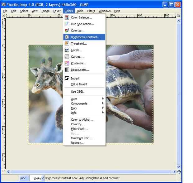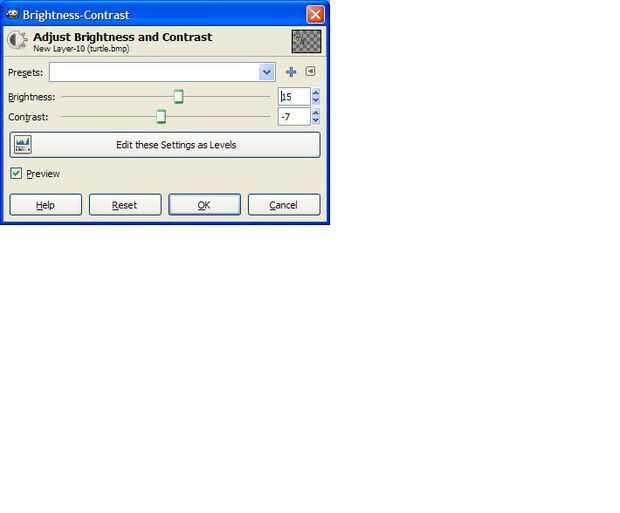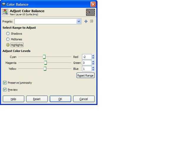 Después de hecho esto, vas a querer cambiar el tono y colores de la imagen para darle ese amarillo opaco y negro de la tortuga. (ver imagen)