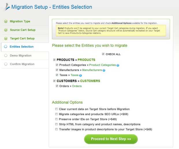 Ahora tienes que poner las garrapatas cerca de entidades que desea migrar. También habrá la posibilidad de opciones adicionales de la orden, que ampliará las oportunidades de migración.