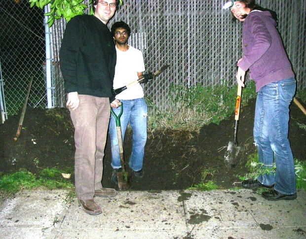 Regresamos a la casa del árbol sin ningún desastres. Rachel aparece fresco y enérgico, nos ayuda a hacer el agujero para plantar el árbol. Tiene que ser mucho más grande de lo que esperábamos, y estamos empezando a quedarse sin energía. Brie es pizza. Fiesta en eso y las naranjas de este árbol.