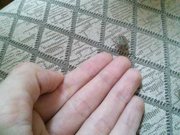 Lentamente y con cuidado poner la mano delante de la chinche. cuidadosamente tome su otra mano y empujarlo a la mano delante de él.