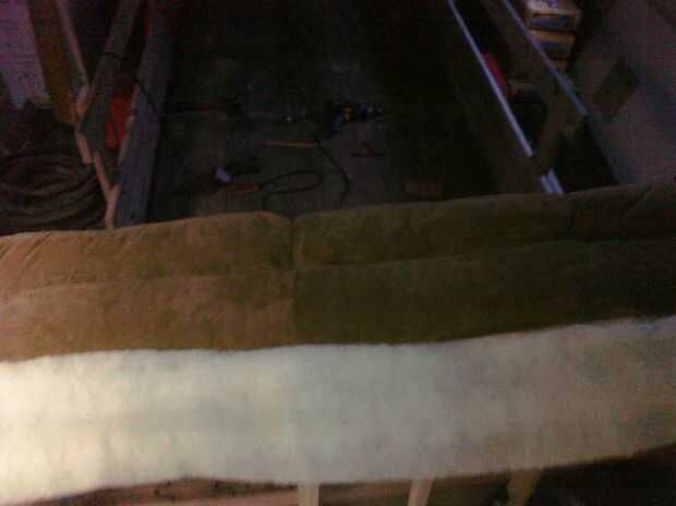 Esta bordeando esconde otra costura. Saque las grapas visibles. Sale de la tira de cartón, y también lo hace en el zócalo. Debajo es otra fila de grapas en los cusions de fondo. Saque los demasiado.