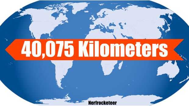 Puesto que el artículo establece que ha habido suficientes dardos hechos en un lapso de cinco años para envolver alrededor de la tierra cuatro veces más, primero tenemos que encontrar lo que es exactamente la circunferencia de la tierra. Una rápida búsqueda en Wikipedia nos revela que ese número es 24.901 millas o 40.075 kilómetros. Para la facilidad de operación será el valor de Km, por lo cual nuestra respuesta (para este paso):