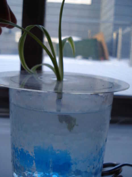 Se puede tomar la planta del bebé y poner las raíces en una taza de agua una o dos semanas para que las raíces puedan crecer más grandes. Yo uso un CD en blanco para mantener la planta entera de caer en la Copa. Compruebe el agua todos días de pareja, si sale seca por mucho tiempo la planta puede morir.
