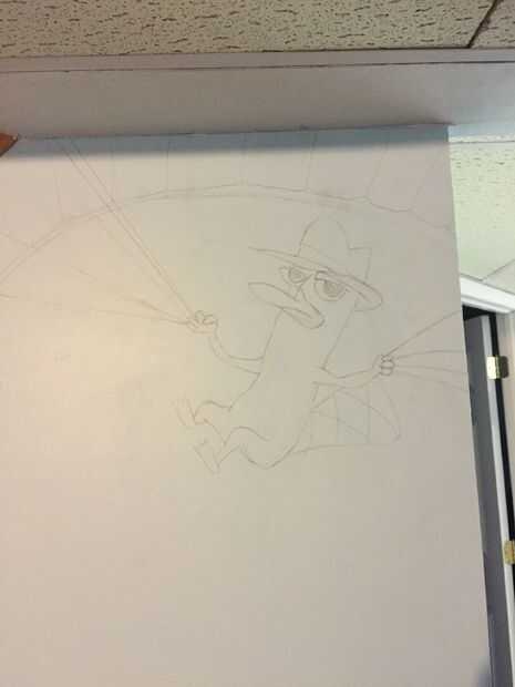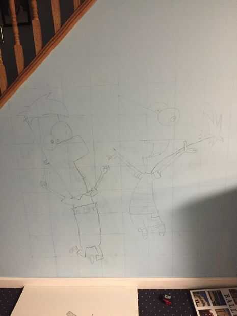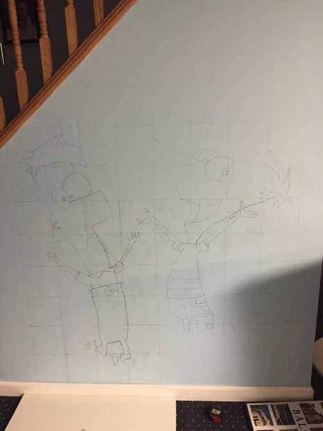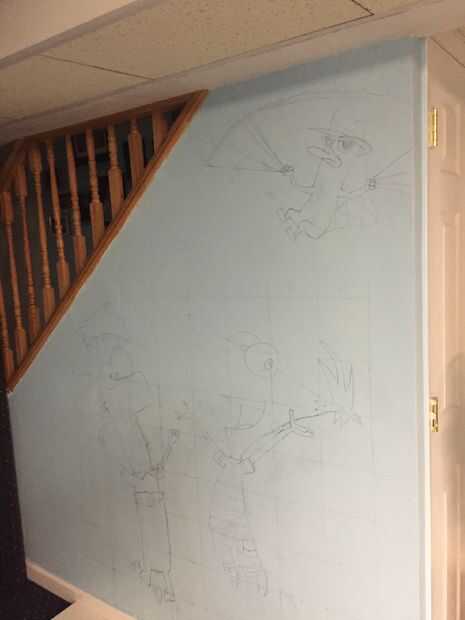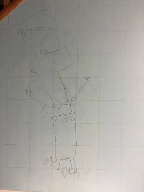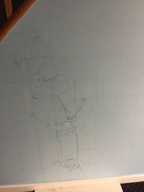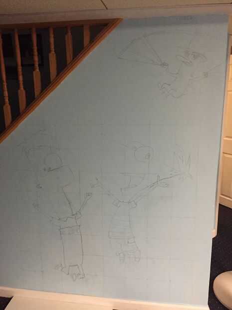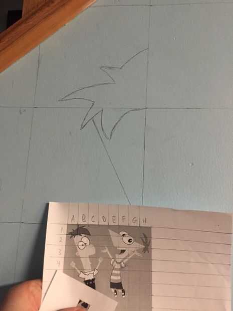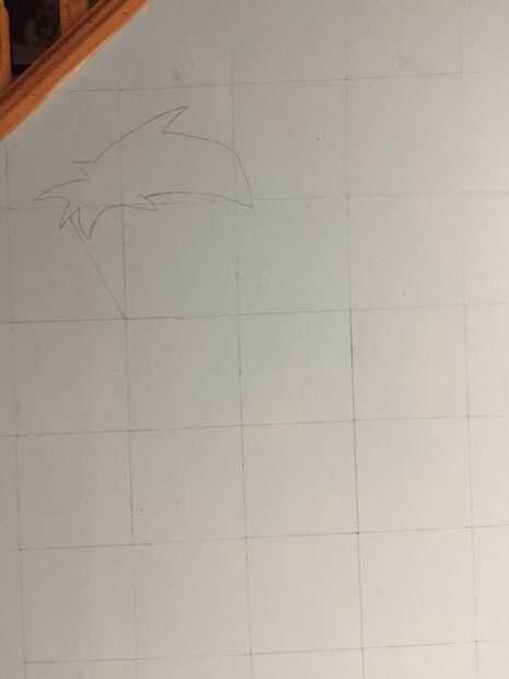 Choose a good open space to paint your mural. Usando el método de la cuadrícula, Esboce la cuadrícula proporcional sobre la pared. Después de una caja a la vez hacer un borrador de lápiz áspera de su imagen en la pared.