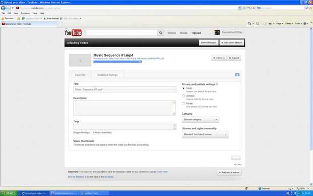 Se completó con éxito y fácilmente subido su vídeo de la música en youtube!