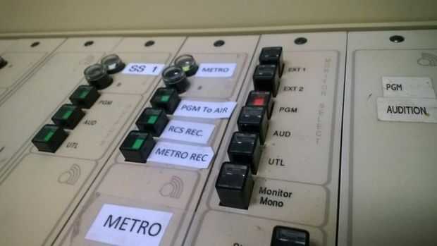 Si estás escuchando la FM o AM broadcast en los auriculares o no puede escuchar lo que estás grabando, compruebe el volumen. Luego, en la pequeña caja negra sentado en la cima de la tabla, oprima botón #1 hasta que se oprime (a veces, si se oprime otro botón, presionando el botón #1 aparecerá el otra otros uno hacia fuera, pero no lo presione. Asegúrese de que está deprimido). A continuación, en la esquina superior derecha del tablero, hay una columna de botones con la etiqueta seleccionar. Empuje la naranja con PGM escrito junto a ella. El bramido de una, etiquetado AUD debería también funcionar.