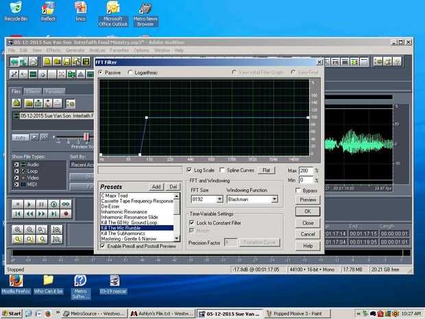Pro Tip: Se inteligente y aplicar esto a tu archivo completo en un intento de out-maneuver Audition. No es inteligente, es perezoso y hará que tu piso sonido audio. Esto solo se aplica a cada palomita plosive. En serio, tarda como 8 segundos.