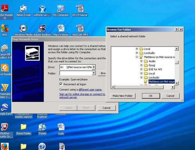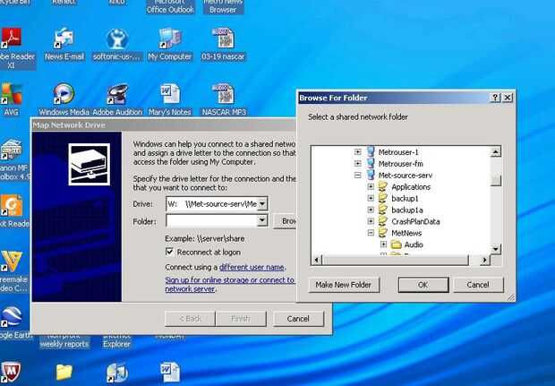 8. Seleccione la carpeta titulada MetNews en Met-fuente-serv, debajo de LocAudio. Haga clic en aceptar, luego termine.